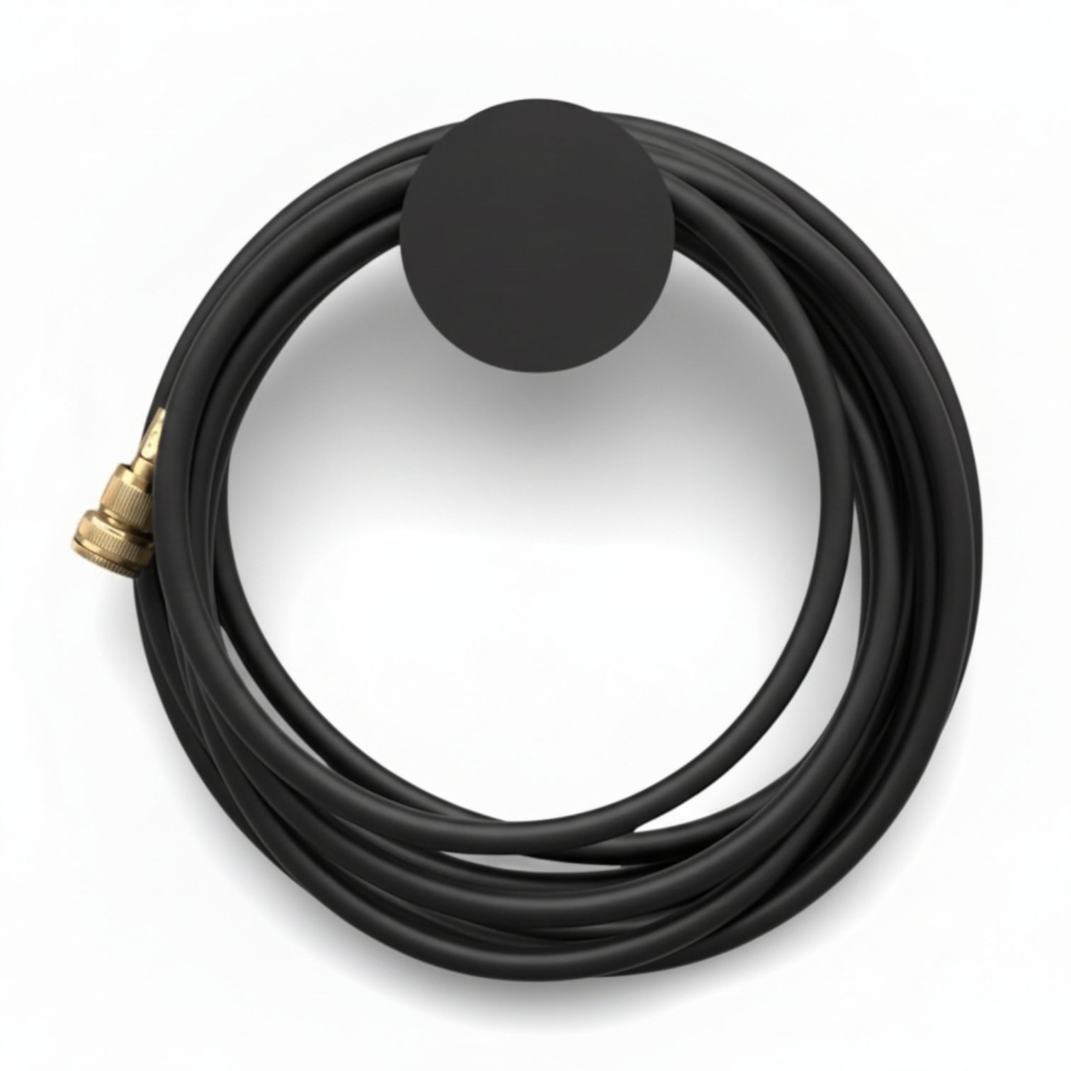 Designed in Australia, Spot is a refined hose holder crafted from solid aluminium and finished with a premium powder coat. Its minimal circular form provides a clean solution for storing hybrid, PVC, rubber, and expandable hoses.