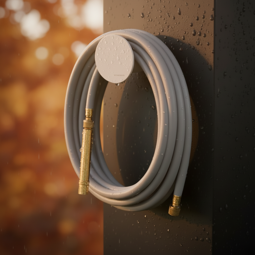 Engineered to support hoses without sharp bends, Spot allows them to rest naturally while maintaining a calm, contemporary presence on the wall. Strong and versatile by design, it also functions seamlessly as an outdoor hook for towels, bags, leads, and everyday essentials.